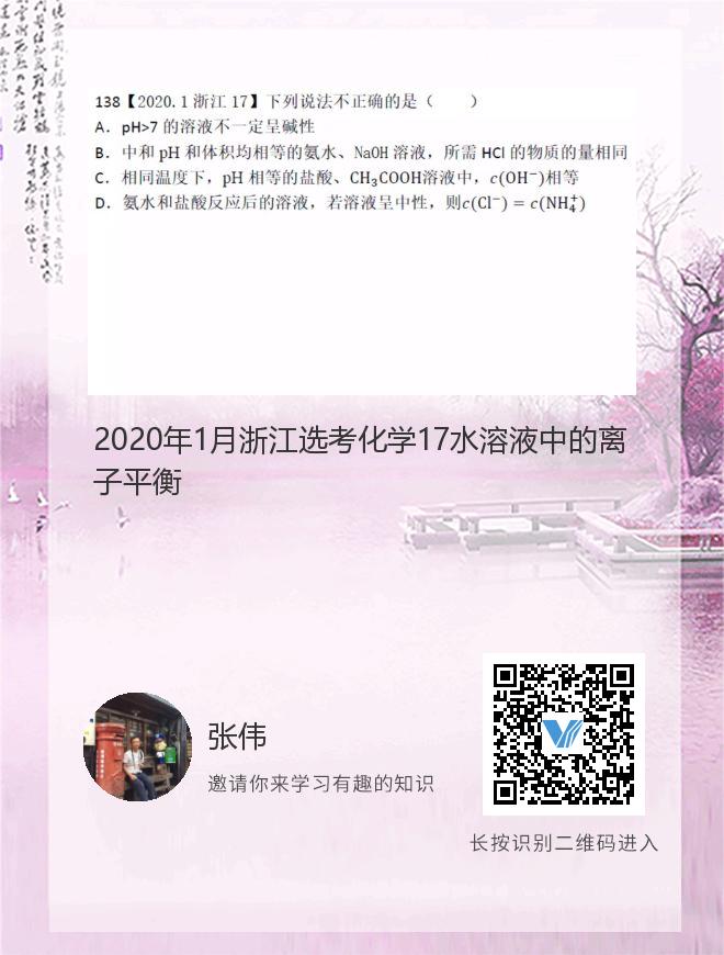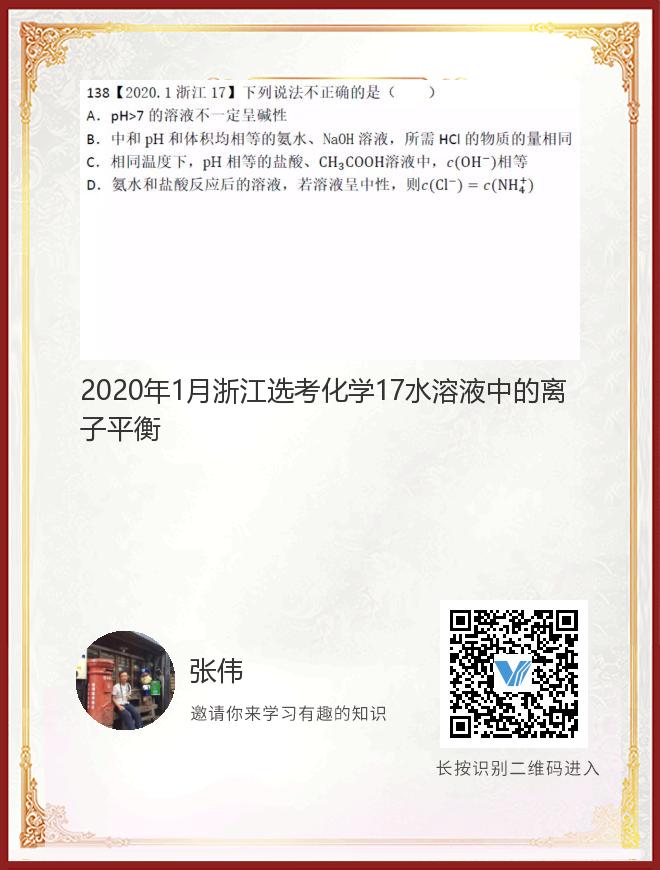 正在播放:2020年1月浙江选考化学17水溶液中的离子平衡