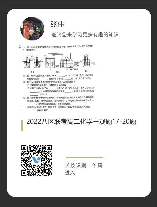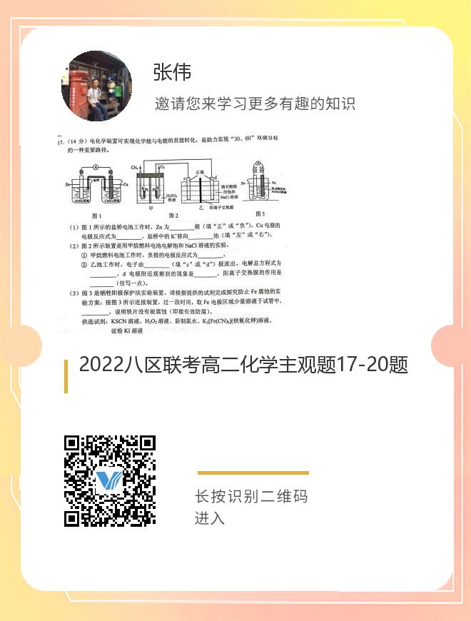2022八区联考高二化学主观题17-20题