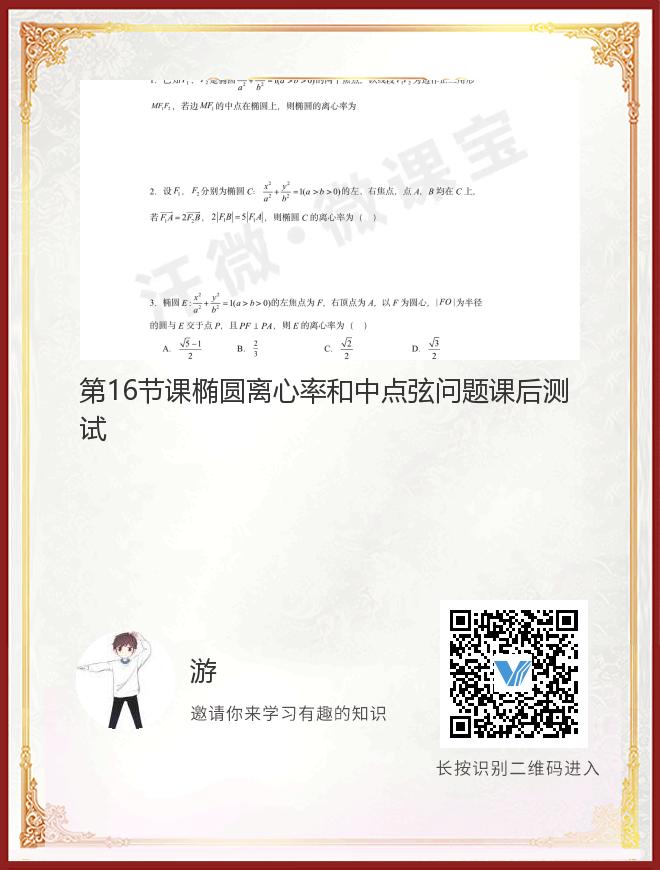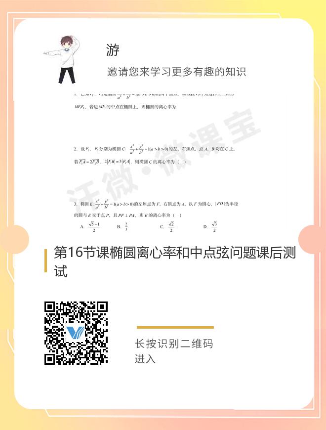 第16节课椭圆离心率和中点弦问题课后测试