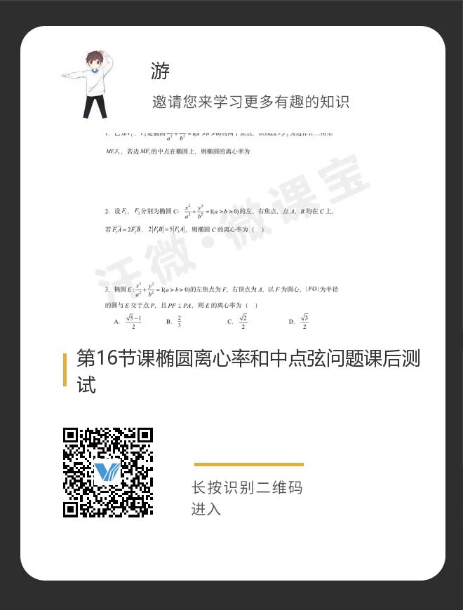 正在播放:第16节课椭圆离心率和中点弦问题课后测试