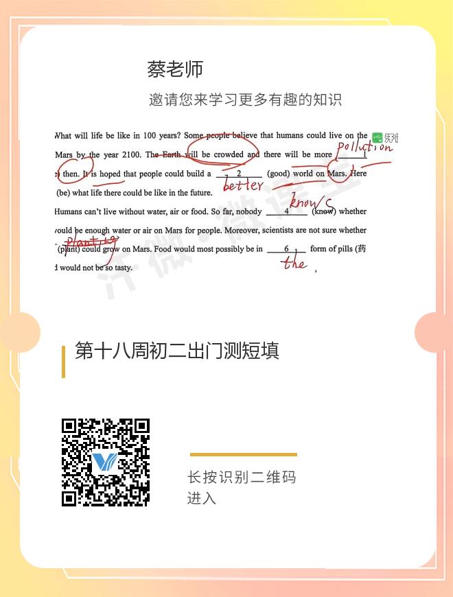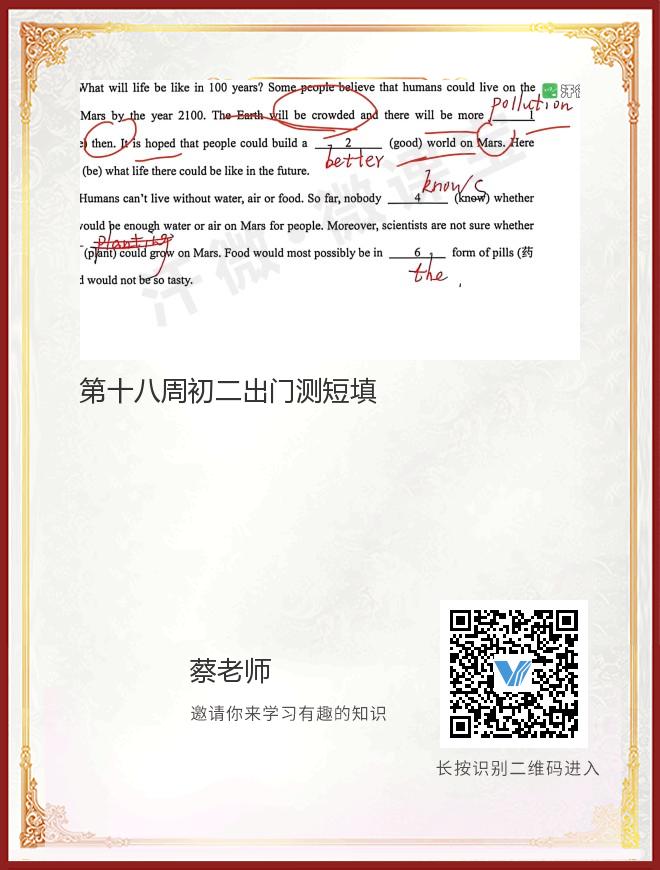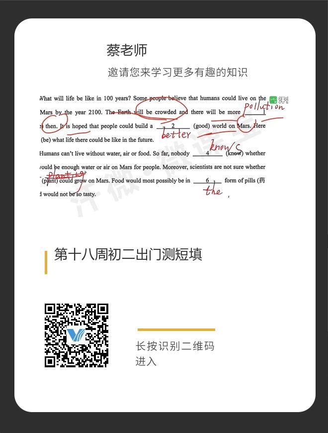 第十八周初二出门测短填