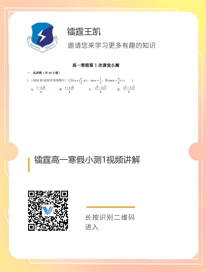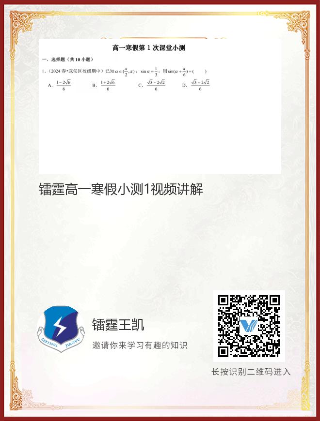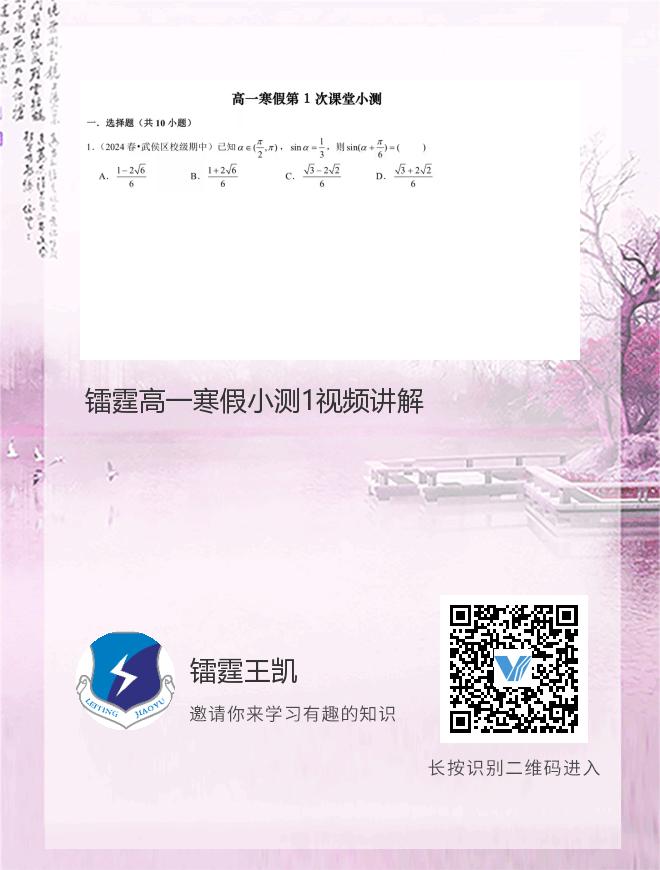 镭霆高一寒假小测1视频讲解