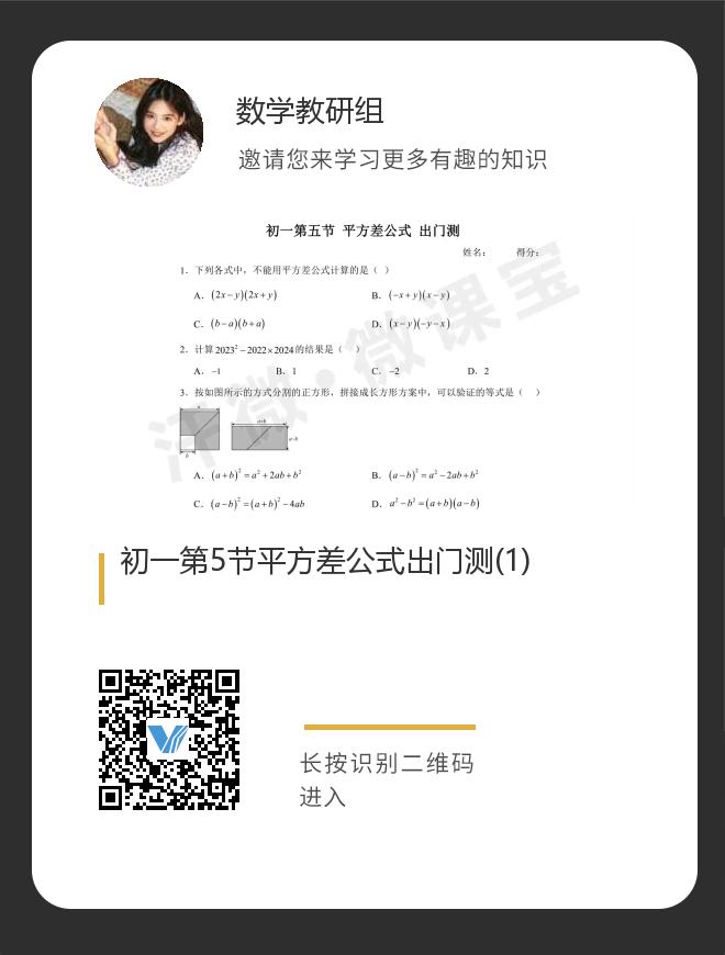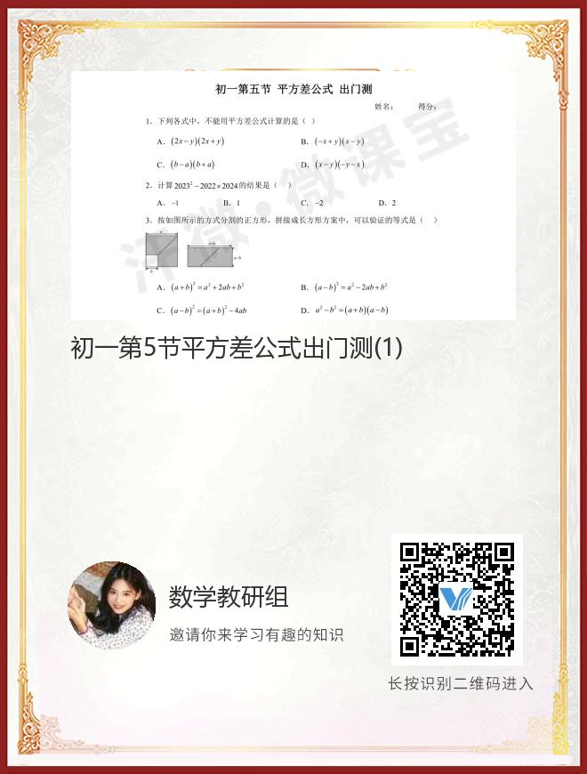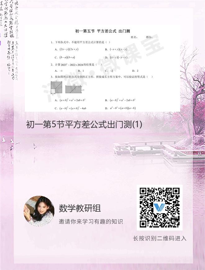 初一第5节平方差公式出门测(1)