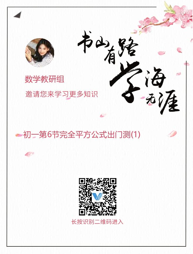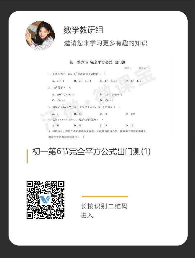 正在播放:初一第6节完全平方公式出门测(1)