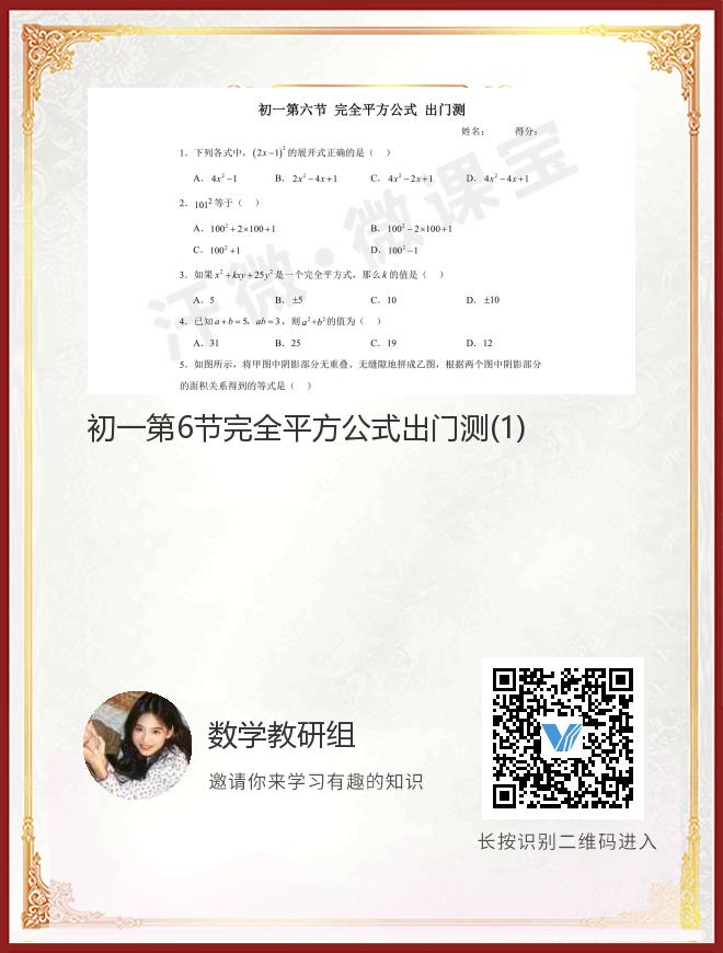 初一第6节完全平方公式出门测(1)