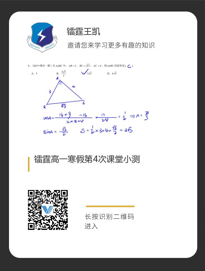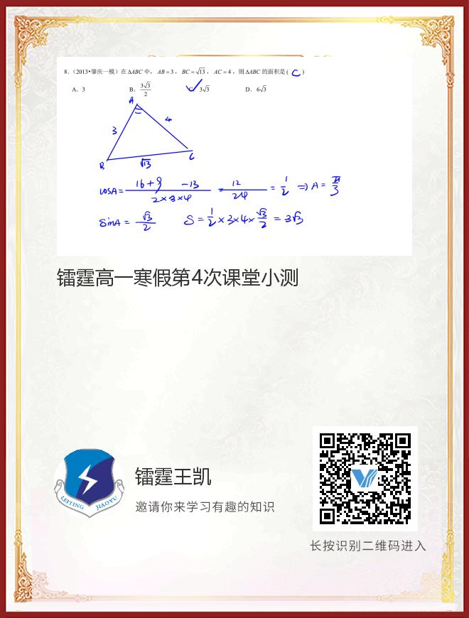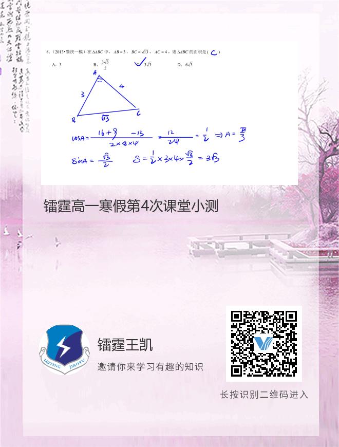 镭霆高一寒假第4次课堂小测