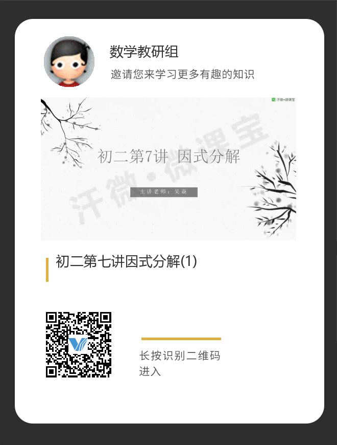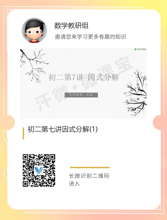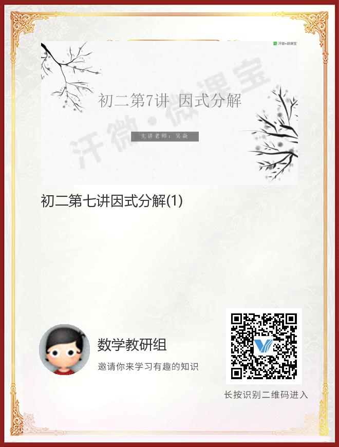 正在播放:初二第七讲因式分解(1)