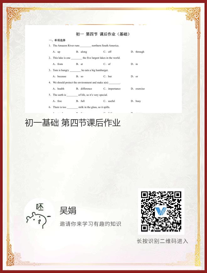 初一基础 第四节课后作业